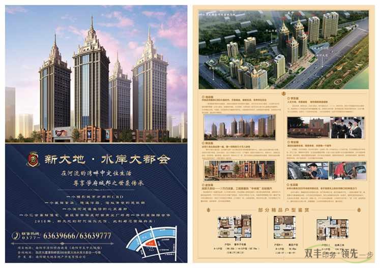 河南印刷廠第一品牌-雙豐印刷簽約水岸大都會(huì)房地產(chǎn)印刷項(xiàng)目:水岸大都會(huì)的開發(fā)商是南陽新大地房地產(chǎn)開發(fā)優(yōu)先公司,開發(fā)商憑借與公司一脈相承的品牌號(hào)召力和高質(zhì)量的服務(wù)水準(zhǔn),力求為南陽打造首屈一指的高檔住宅。
